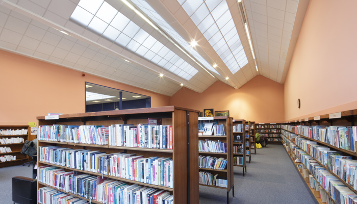 An access ramp is present on entry to the library.